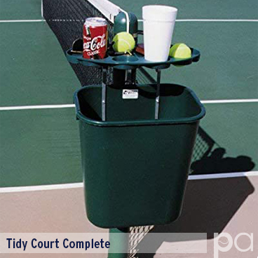 After we complete the courts and before the next resurfacing, we recommend that our clients encourage preventative maintenance habits. Prohibit food on the courts and provide wastebaskets for players to place their ball cans and empty bottles. We suggest our Tidy Court system which attaches directly to the net post and includes cup and ball holders. To regularly clean a court and free it from debris and water, we recommend using a large-size push broom with soft bristles and water brooms.
